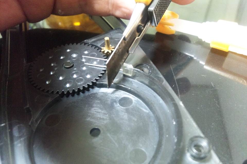 ついでにBB弾が引っかかっていたギアの溝も少し面取りをしてあります。