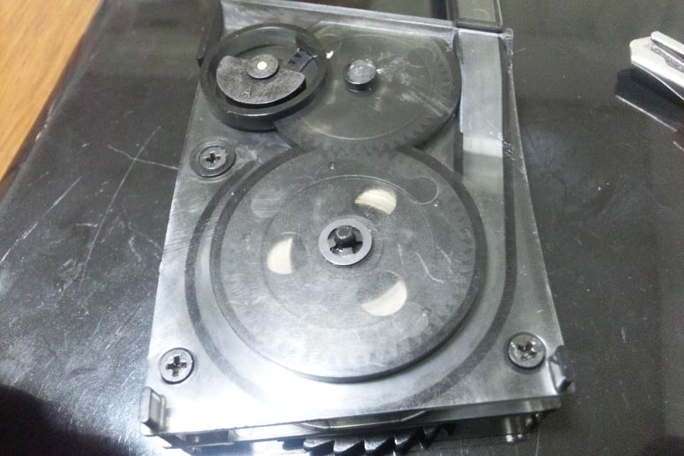 ゲームで使用していると上のギアのピンが抜け落ちて給弾ルートに入り込むことがあります。次世代M4系のマガジンでも同様の症状を確認しています。メンテナンスの際もこのピンを抜くことはまず無いので、ピンを外側から接着剤で固定しました。「軸の先端に接着剤を塗って挿入」ってやると、十中八九ギアに接着剤が付いて回転しなくなります。固定する場合は外側から固定しましょう。