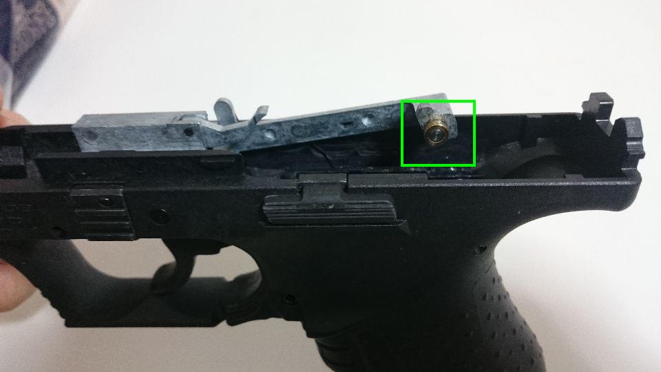 射撃に関与する部品。小さな部品なので見失いやすい。要注意!