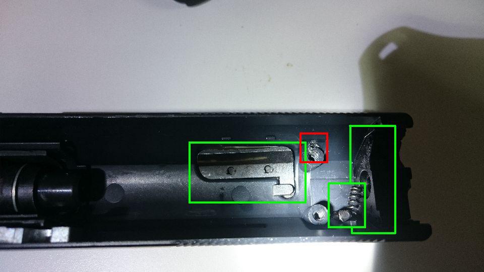 ストライカーユニットを取り外した時点でスライド内に脱落している。