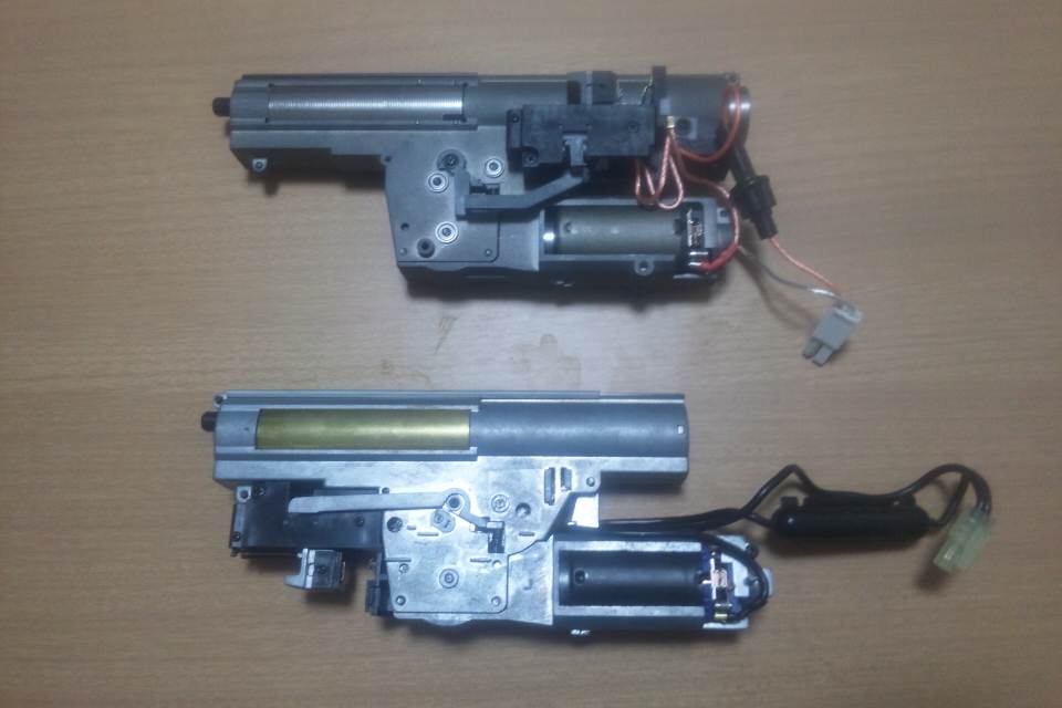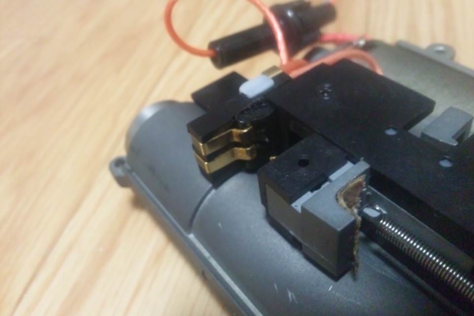 ギアのタイミングが悪いとトリガーユニットが真正面からカットオフレバーに当り、トリガーを引けなくなる。