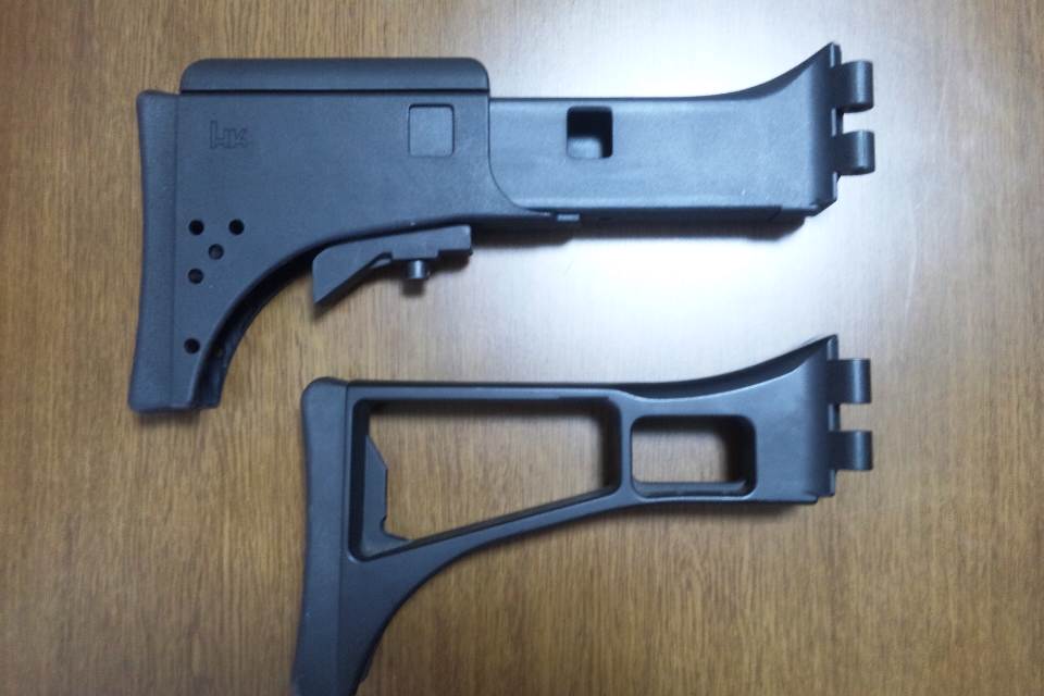 イジェクションポートが隠れるが、実銃にも存在するタイプ(G36KV)のストックらしい。