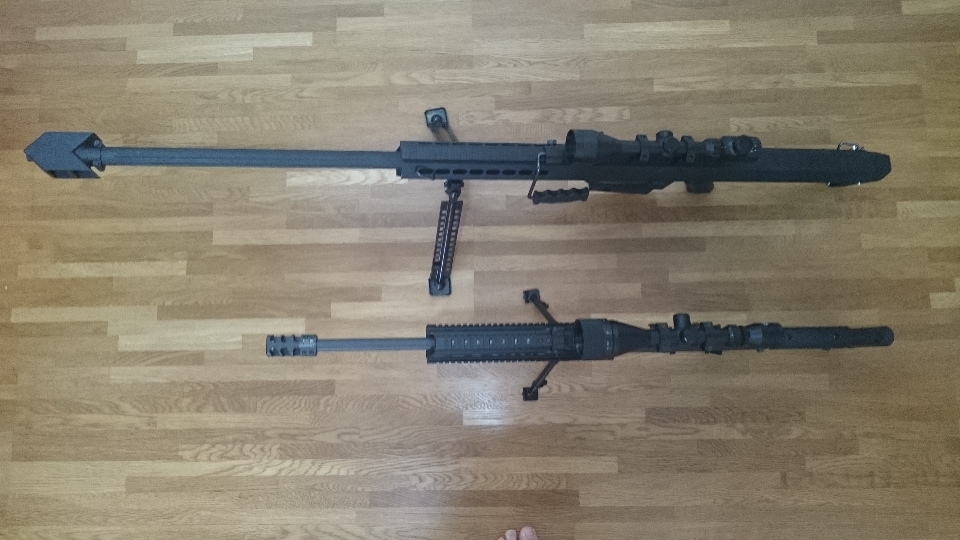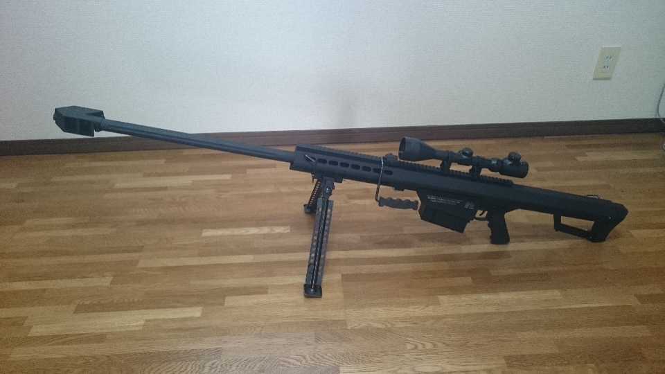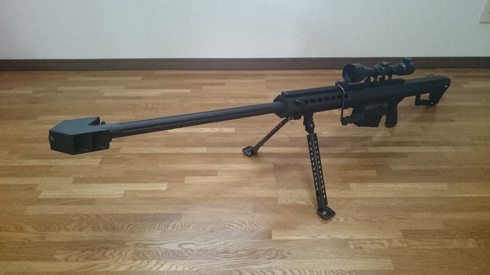 昔買った雑誌にM82の実銃レビューがあり、マズルブレーキのおかげで反動は12ゲージショットガン程度に抑えられているとの事でした。
