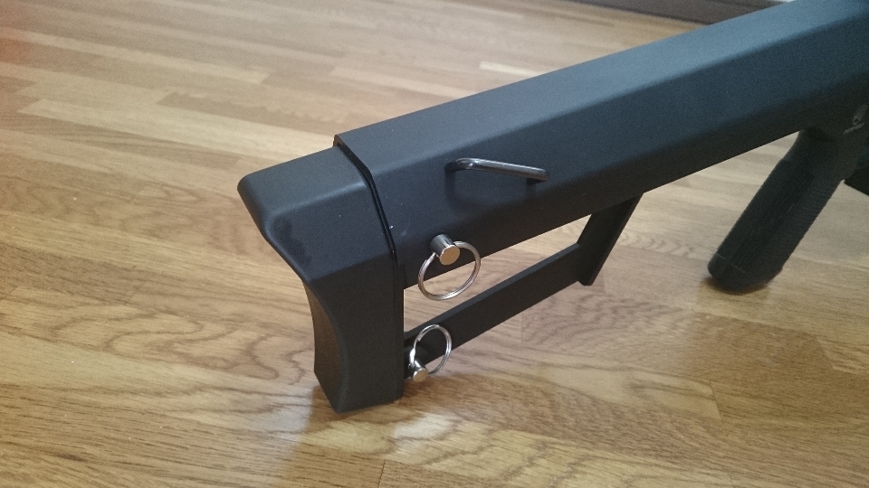 ストックの一番後ろのピンを抜くとストック後端を外すことができます。