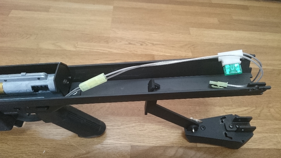 ストック内はバッテリー収納スペースになっており、ラージバッテリーを格納可能