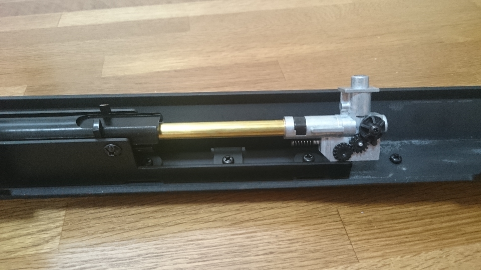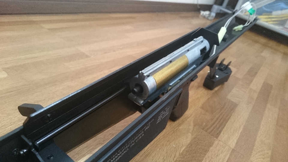 Ver2メカボックスではボアアップシリンダを組み込んでもこのバレル長に十分なシリンダ容量を確保できないので要交換。
