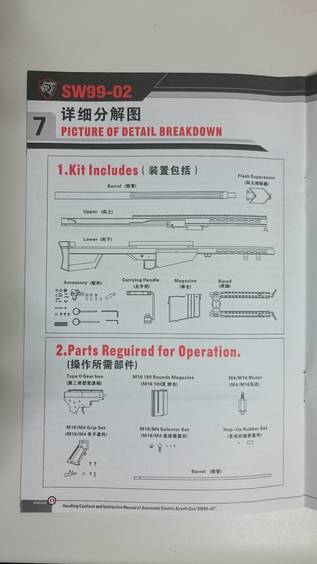 今回購入したM82A1スコープセット、取説上の型式はSW99-02となっています。