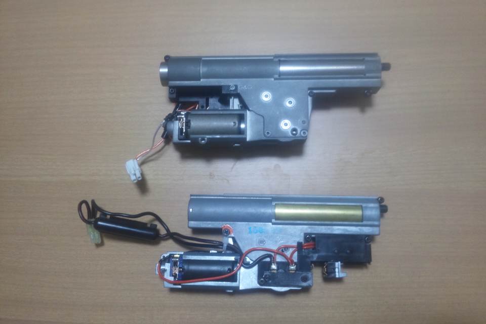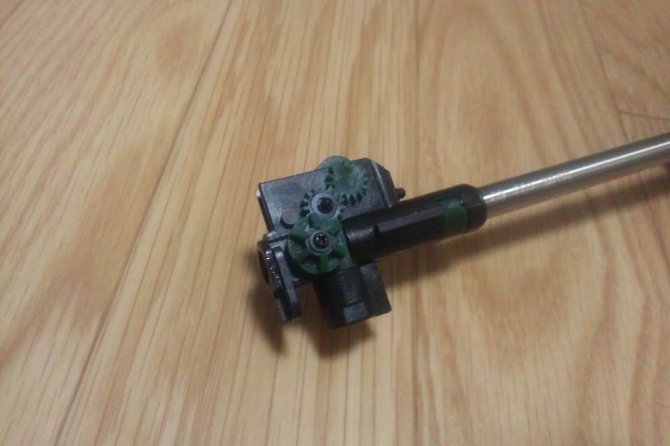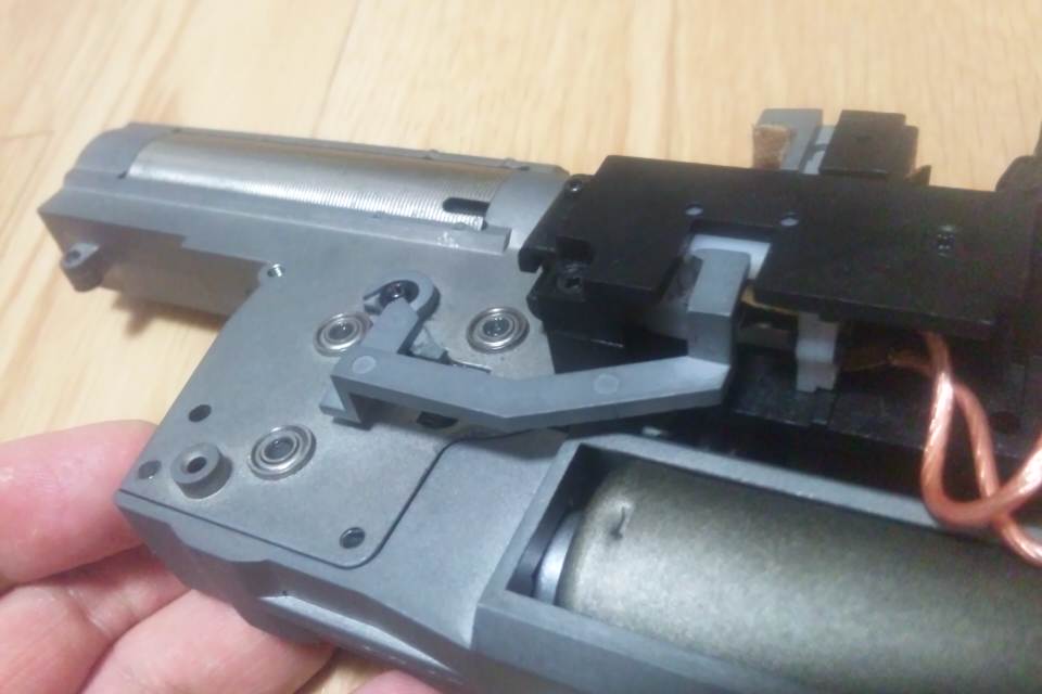 ギアのタイミングが悪いとトリガーユニットが真正面からカットオフレバーに当り、トリガーを引けなくなる。
